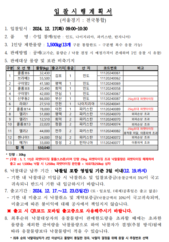 [비축공고] 비축일자: 2024-12-17 페이지 정보 작성자 KAFCO 작성일24-12-17 13:56 조회1,590회 댓글0건 관련링크 이전글 다음글 목록 본문 [비축공고] 비축일자: 2024-12-17 댓글목록 등록된 댓글이 없습니다. 이전글 다음글 목록
