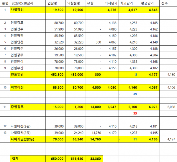 Re: [비축결과] 총입찰: 650,000kg, 총낙찰: 616,640kg 페이지 정보 작성자 KAFCO 작성일23-05-30 14:19 조회2,475회 댓글0건 관련링크 이전글 목록 본문 비축결과] 시행일자: 2023-05-30 댓글목록 등록된 댓글이 없습니다. 이전글 목록