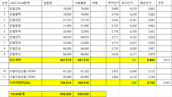 Re: [비축결과] 총입찰: 550,020kg, 총낙찰: 550,020kg 페이지 정보 작성자 KAFCO 작성일23-10-24 11:14 조회2,195회 댓글0건 관련링크 이전글 다음글 목록 본문 [비축결과] 총입찰: 550,020kg, 총낙찰: 550,020kg 댓글목록 등록된 댓글이 없습니다. 이전글 다음글 목록