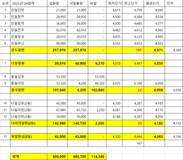 [비축결과] 총입찰: 600,000kg, 총낙찰: 485,700kg 페이지 정보 작성자 KAFCO 작성일23-07-04 12:27 조회2,464회 댓글0건 관련링크 이전글 다음글 목록 본문 [비축결과] 총입찰: 600,000kg, 총낙찰: 485,700kg 댓글목록 등록된 댓글이 없습니다. 이전글 다음글 목록