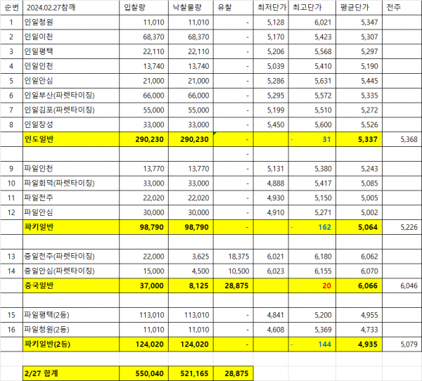 Re: [비축결과] 총입찰: 550,040kg, 총낙찰: 521,165kg 페이지 정보 작성자 KAFCO 작성일24-02-27 17:15 조회2,180회 댓글0건 관련링크 이전글 다음글 목록 본문 [비축결과] 총입찰: 550,040kg, 총낙찰: 521,165kg 댓글목록 등록된 댓글이 없습니다. 이전글 다음글 목록