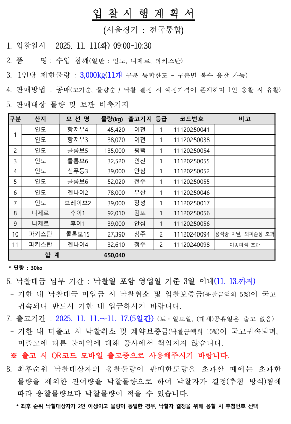 [비축공고] 비축일자: 2025-11-11 페이지 정보 작성자 KAFCO 작성일25-11-07 14:36 조회179회 댓글0건 관련링크 이전글 다음글 목록 본문 [비축공고] 비축일자: 2025-11-11 댓글목록 등록된 댓글이 없습니다. 이전글 다음글 목록