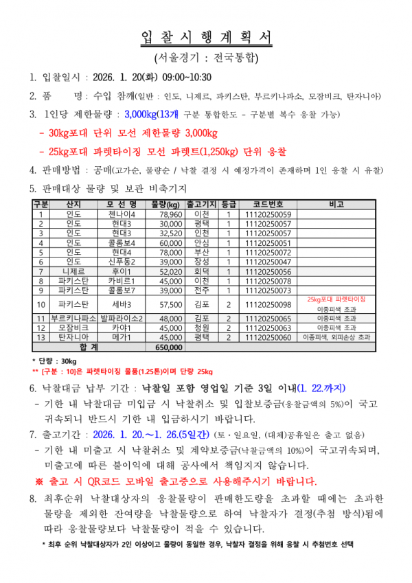 [비축공고] 비축일자:2026-01-20 페이지 정보 작성자 KAFCO 작성일26-01-15 13:42 조회199회 댓글0건 관련링크 이전글 다음글 목록 본문 [비축공고] 비축일자:2026-01-20 댓글목록 등록된 댓글이 없습니다. 이전글 다음글 목록