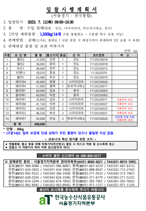 [비축공고] 시행일자: 2023-07-11 페이지 정보 작성자 KAFCO 작성일23-07-07 16:50 조회2,643회 댓글0건 관련링크 이전글 다음글 목록 본문 [비축공고] 시행일자: 2023-07-11 댓글목록 등록된 댓글이 없습니다. 이전글 다음글 목록