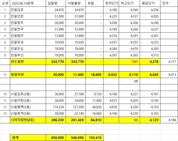 Re: [비축결과] 총입찰:650,000kg, 총낙찰:546,590kg 페이지 정보 작성자 KAFCO 작성일23-06-13 15:07 조회2,487회 댓글0건 관련링크 이전글 다음글 목록 본문 [비축결과] 시행일자: 2023-06-13 댓글목록 등록된 댓글이 없습니다. 이전글 다음글 목록