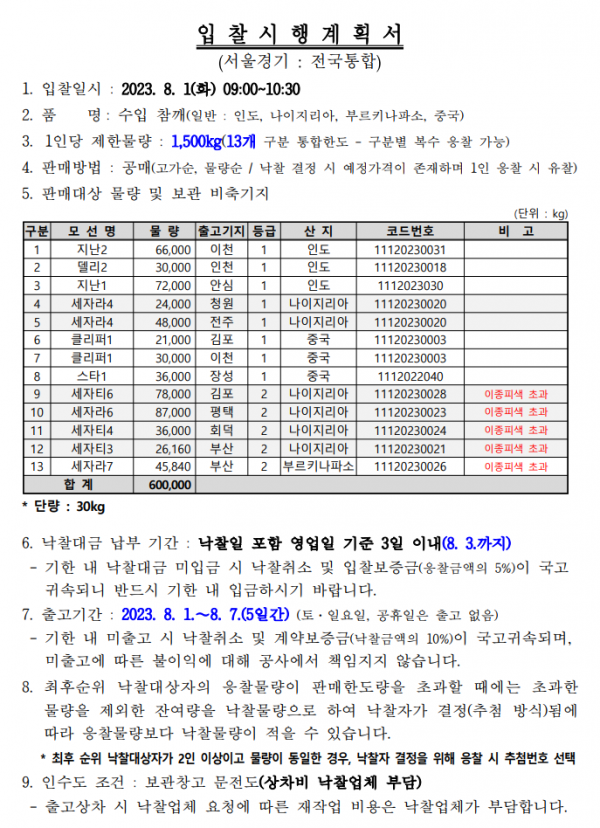 [비축공고] 시행일자: 2023-08-01 페이지 정보 작성자 KAFCO 작성일23-08-01 09:20 조회2,865회 댓글0건 관련링크 이전글 다음글 목록 본문 [비축공고] 시행일자: 2023-08-01 댓글목록 등록된 댓글이 없습니다. 이전글 다음글 목록