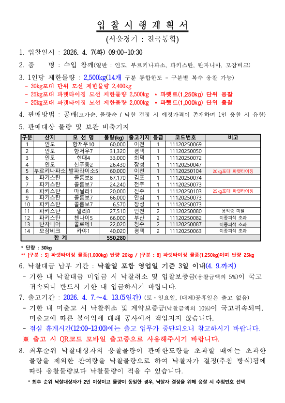 [비축공고] 비축일자:2026-04-07 페이지 정보 작성자 KAFCO 작성일26-04-05 18:25 조회4회 댓글0건 관련링크 다음글 목록 본문 [비축공고] 비축일자:2026-04-07 댓글목록 등록된 댓글이 없습니다. 다음글 목록