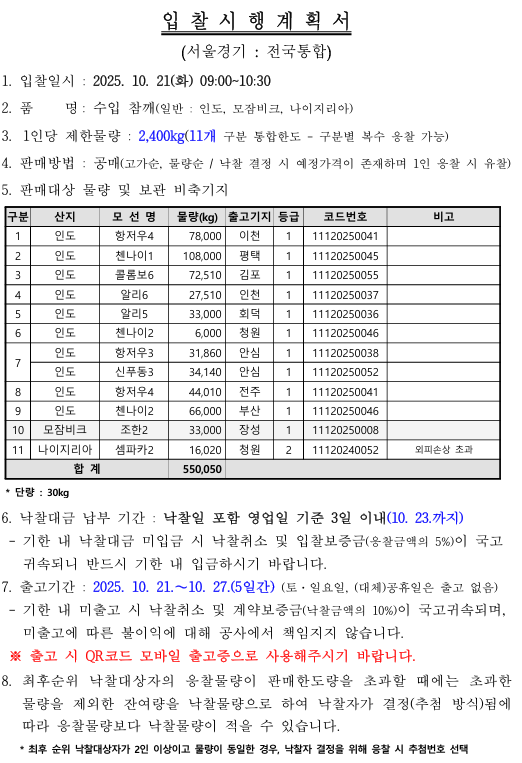 [비축공고] 비축일자: 2025-10-21 페이지 정보 작성자 KAFCO 작성일25-11-03 15:37 조회478회 댓글0건 관련링크 이전글 다음글 목록 본문 [비축공고] 비축일자: 2025-10-21 댓글목록 등록된 댓글이 없습니다. 이전글 다음글 목록
