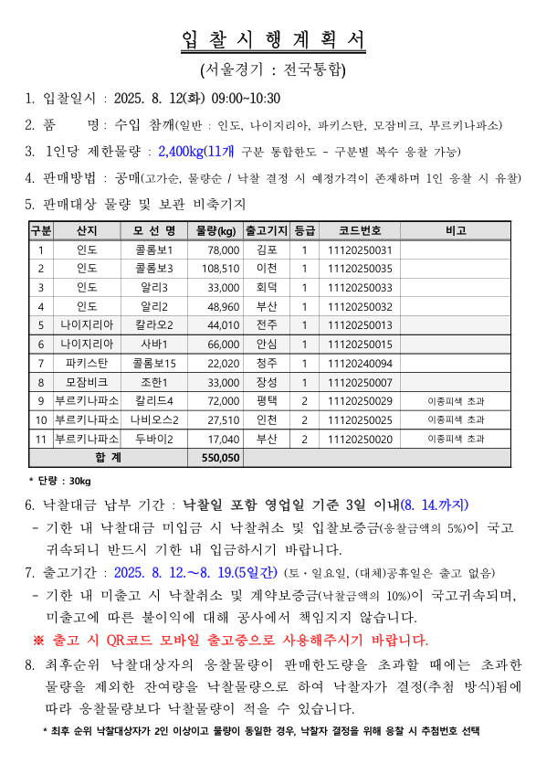 [비축공고] 비축일자: 2025-08-12 페이지 정보 작성자 KAFCO 작성일25-08-08 10:39 조회868회 댓글0건 관련링크 이전글 다음글 목록 본문 [비축공고] 비축일자: 2025-08-12 댓글목록 등록된 댓글이 없습니다. 이전글 다음글 목록