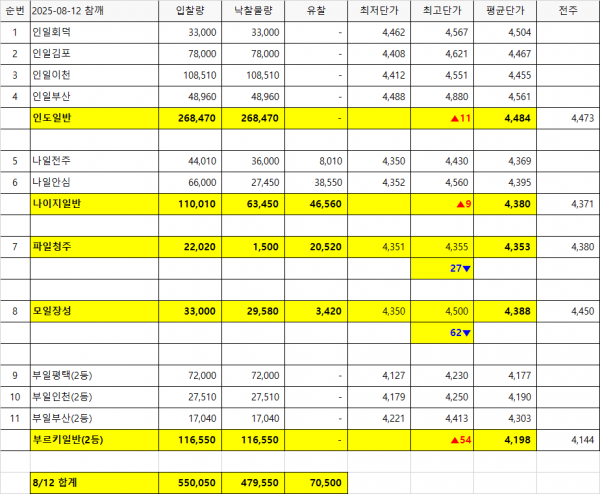 Re: [비축결과] 총비축: 550,050kg, 총낙찰: 479,550kg 페이지 정보 작성자 KAFCO 작성일25-08-12 11:37 조회814회 댓글0건 관련링크 이전글 다음글 목록 본문 [비축결과] 총비축: 550,050kg, 총낙찰: 479,550kg 댓글목록 등록된 댓글이 없습니다. 이전글 다음글 목록