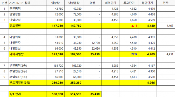 Re: [비축결과] 총비축: 550,020kg, 총낙찰: 514,590kg 페이지 정보 작성자 KAFCO 작성일25-07-01 11:40 조회980회 댓글0건 관련링크 이전글 다음글 목록 본문 [비축결과] 총비축: 550,020kg, 총낙찰: 514,590kg 댓글목록 등록된 댓글이 없습니다. 이전글 다음글 목록