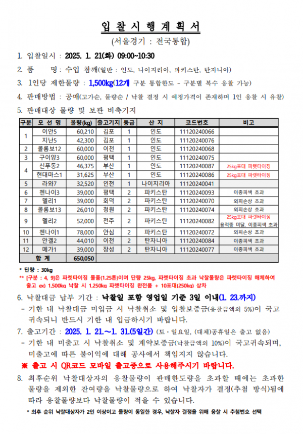 [비축공고] 비축일자: 2025-01-21 페이지 정보 작성자 KAFCO 작성일25-02-05 10:37 조회1,625회 댓글0건 관련링크 이전글 다음글 목록 본문 [비축공고] 비축일자: 2025-01-21 댓글목록 등록된 댓글이 없습니다. 이전글 다음글 목록