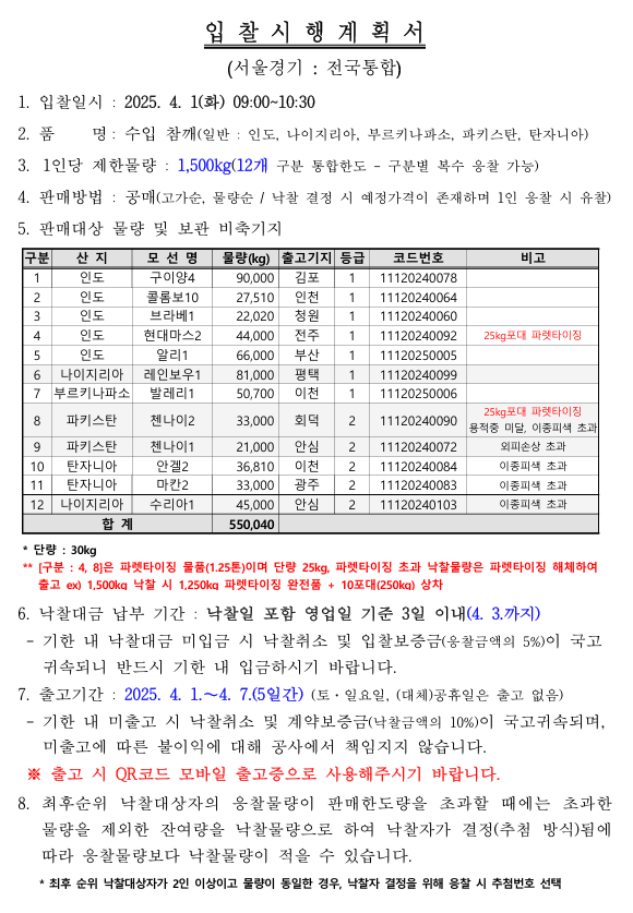 [비축공고] 비축일자: 2025-04-01 페이지 정보 작성자 KAFCO 작성일25-04-02 10:07 조회1,152회 댓글0건 관련링크 이전글 다음글 목록 본문 [비축공고] 비축일자: 2025-04-01 댓글목록 등록된 댓글이 없습니다. 이전글 다음글 목록