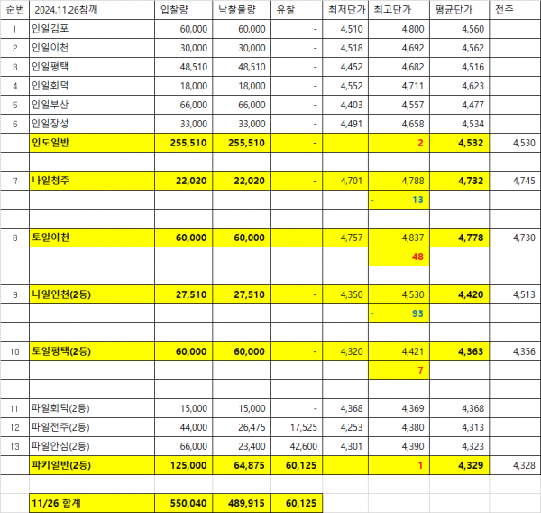 Re: [비축결과] 총비축:550,040KG, 총낙찰: 489,915KG 페이지 정보 작성자 KAFCO 작성일24-11-27 10:12 조회1,883회 댓글0건 관련링크 이전글 다음글 목록 본문 [비축결과] 총비축:550,040KG, 총낙찰: 489,915KG 댓글목록 등록된 댓글이 없습니다. 이전글 다음글 목록