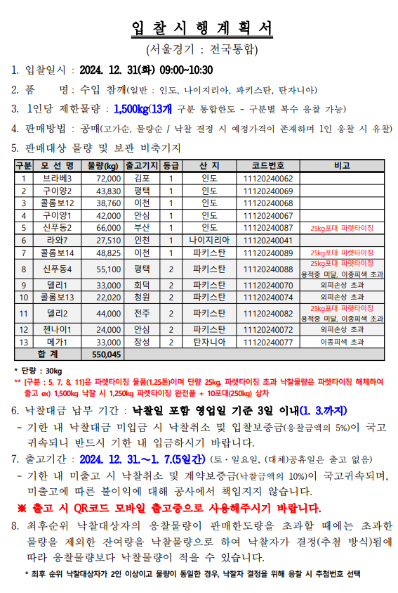 [비축공고] 비축일자: 2024-12-31 페이지 정보 작성자 KAFCO 작성일24-12-27 21:21 조회1,784회 댓글0건 관련링크 이전글 다음글 목록 본문 [비축공고] 비축일자: 2024-12-31 댓글목록 등록된 댓글이 없습니다. 이전글 다음글 목록
