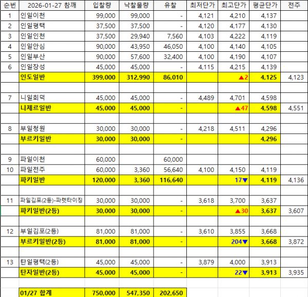 Re: [비축결과] 총입찰 : 750,000kg, 총낙찰 : 547,350kg 페이지 정보 작성자 KAFCO 작성일26-01-27 10:48 조회247회 댓글0건 관련링크 이전글 다음글 목록 본문 [비축결과] 총입찰 : 750,000kg, 총낙찰 : 547,350kg 댓글목록 등록된 댓글이 없습니다. 이전글 다음글 목록