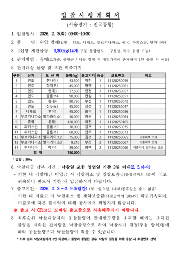 [비축공고] 비축일자:2026-02-03 페이지 정보 작성자 KAFCO 작성일26-01-29 18:34 조회259회 댓글0건 관련링크 이전글 다음글 목록 본문 [비축공고] 비축일자:2026-02-03 댓글목록 등록된 댓글이 없습니다. 이전글 다음글 목록