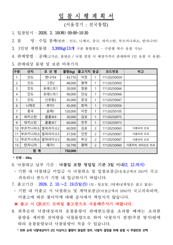 [비축공고] 비축일자:2026-02-10 페이지 정보 작성자 KAFCO 작성일26-02-05 18:02 조회214회 댓글0건 관련링크 이전글 다음글 목록 본문 [비축공고] 비축일자:2026-02-10 댓글목록 등록된 댓글이 없습니다. 이전글 다음글 목록
