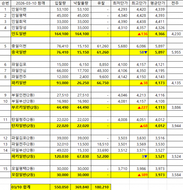 Re: [비축결과] 총입찰 : 550,050kg, 총낙찰 : 369,840kg 페이지 정보 작성자 KAFCO 작성일26-03-10 11:03 조회3회 댓글0건 관련링크 이전글 다음글 목록 본문 [비축결과] 총입찰 : 550,050kg, 총낙찰 : 369,840kg 댓글목록 등록된 댓글이 없습니다. 이전글 다음글 목록